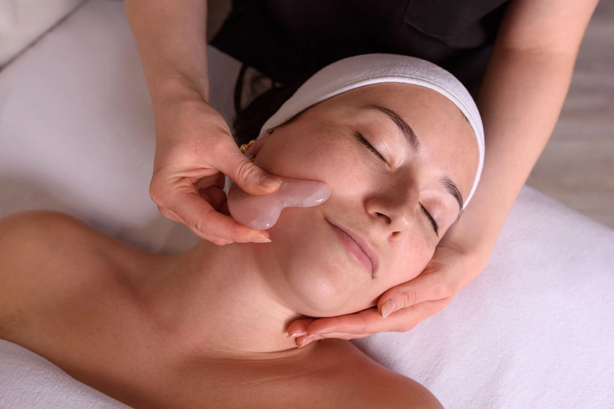 Gua Sha Massage - This massage helps with puffiness, softens wrinkles, helps with dark circles, promotes blood circulation, relieves tension in your muscles and helps with collagen production